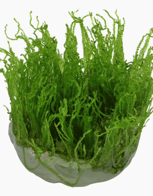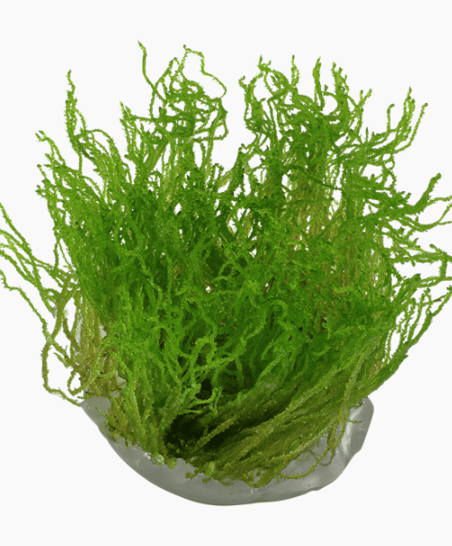 Bucephalandra ‘Bukit Kalem’ es una planta fácil de mantener, de crecimiento lento y que prefiere niveles bajos de luz. Su forma densa y atractiva se debe a su tendencia natural a ramificarse, incluso sin poda.